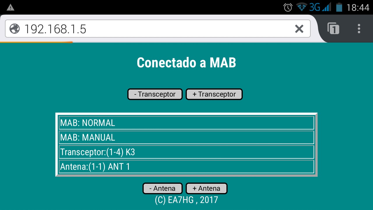 MAB funcionando como Conmutador Normal de Antenas en modo Manual.